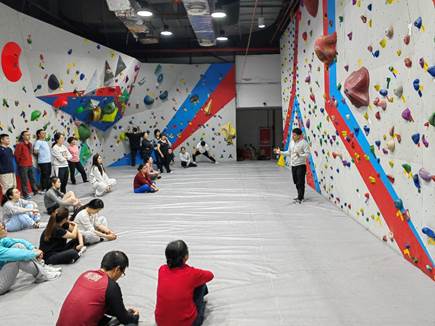课程伊始,刘博老师以"岩石上的芭蕾"为喻,对攀岩运动进行了全面系统的讲解,内容涵盖攀岩的分类、难度级别划分、速度攀岩与攀石等各个项目的独特特点,让初次接触攀岩的老师们对这项运动有了宏观的认识。