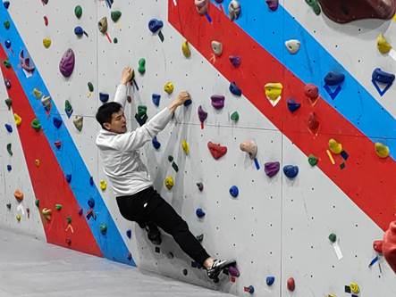 针对教职工群体特点,刘博老师特别强调了攀岩的健身价值:"这项运动能全面提升核心肌群力量、改善身体平衡性,对久坐办公人群的肩颈康复尤为有效。"