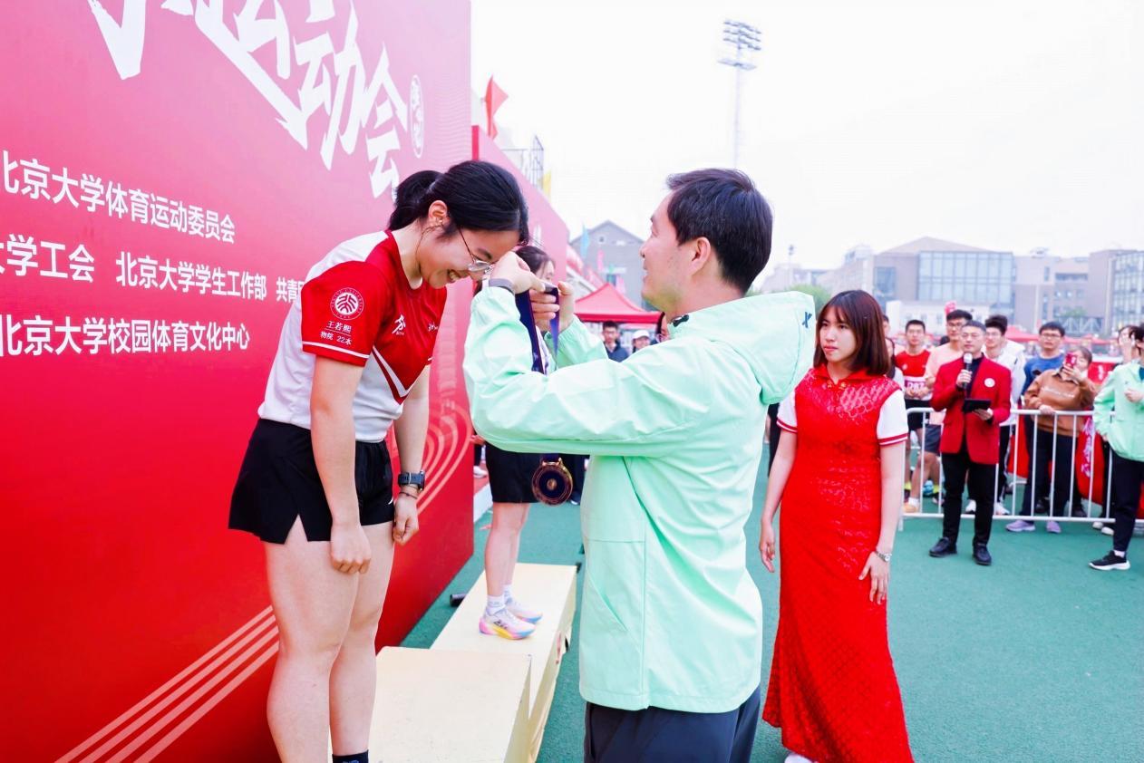 图书馆党委副书记、工会主席周春霞和物理学院2024级博士生陈钰梦分别作为教工运动员代表和学生运动员代表宣誓,体育教研部教师代表全体裁判宣誓。现场嘉宾和校领导为获得2024年度校园体育活动积分前十名的院系颁发北京大学校园体育工作先进单位荣誉证书。