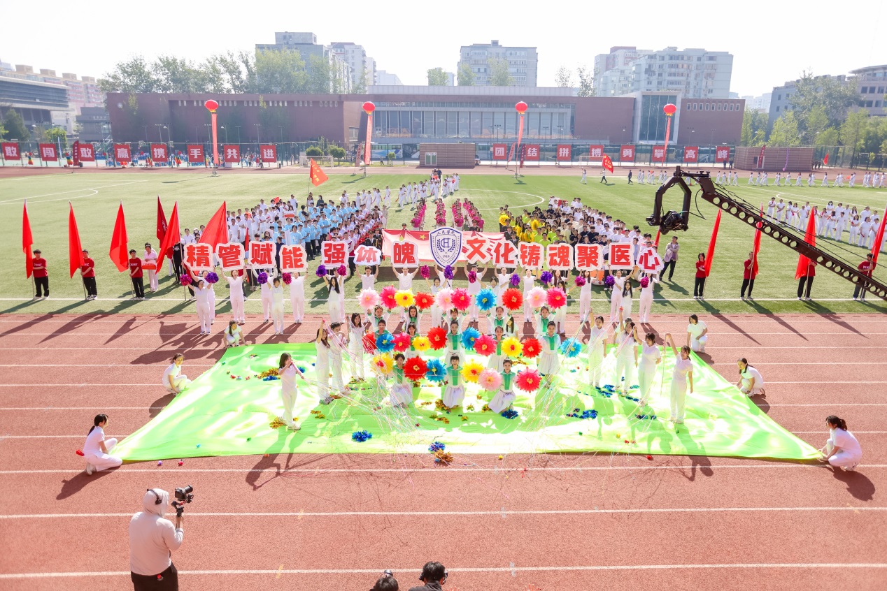 在庄严国旗的引领下,由医学部和各学院、医院、机关部处领导组成的主席团,及学生、教工运动队在运动员进行曲中依次入场。入场式上,各方阵精神抖擞,步伐铿锵有力,口号声震云霄,风采展示环节更是构思精巧、独具匠心,全方位彰显出北大医学人积极进取、昂扬向上的精神风貌。