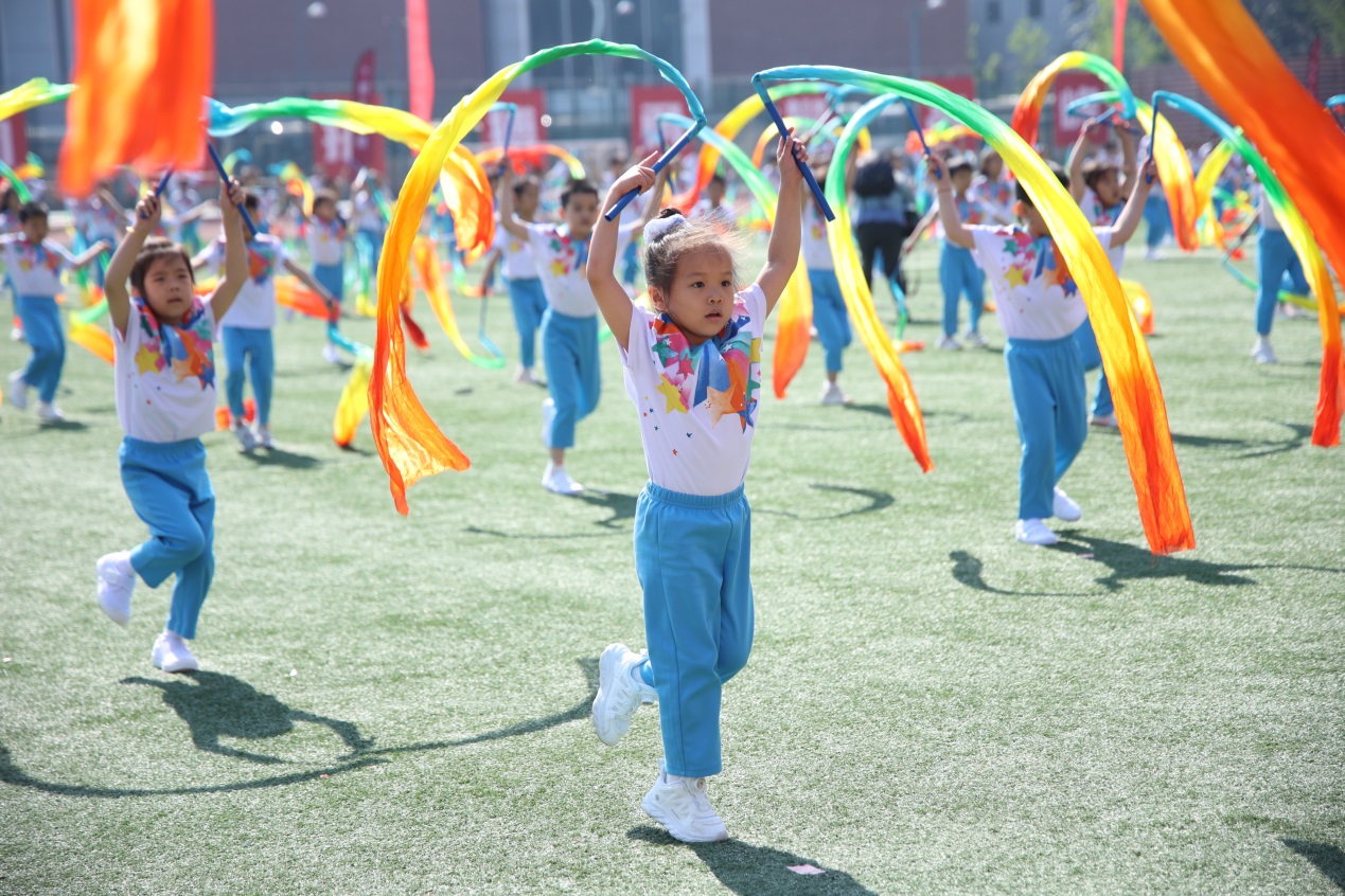 440名教职工气势如虹,带来团体操《沧海一声笑》,扇舞翩跹间,尽显北大医学人勇毅奔赴新征程的昂扬精气神,每个动作都饱含着十足的干劲。幼儿园小朋友们和青年教师共同带来的彩带操《童心向祖国,彩带连世界》,震撼登场,孩子们用灵动的彩带编织五彩斑斓的梦想,童趣与激情完美融合。精彩的团体操表演也将开幕式的氛围推向了高潮。