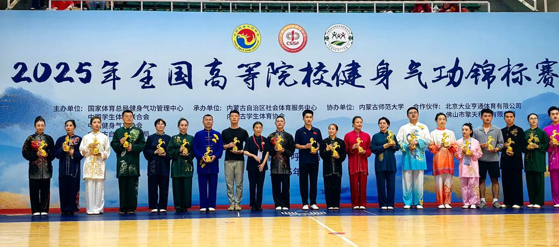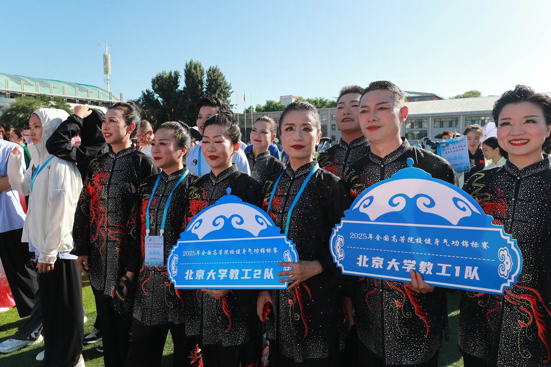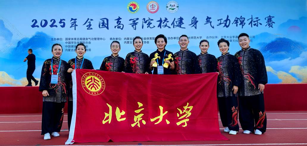 2025年7月27日至30日,全国高等院校健身气功锦标赛于内蒙古师范大学赛罕校区隆重举行。作为一类赛事,本届赛事规模创历史新高,吸引了来自全国29个省区市的327支代表队、近1400名运动员,角逐易筋经、五禽戏、八段锦等7项普及功法及4项竞赛功法。北京大学派出两支教工代表队、共8名运动员参赛,参加了6个项目的比拼,最终取得5个一等奖和1个二等奖。其中包括两个冠军、两个季军、一个一等奖的第五名和一个二等奖的第一名。