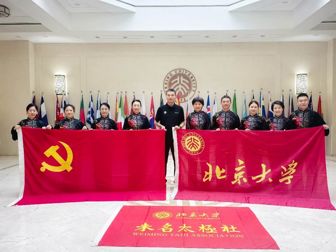 "因太极,更北大。"这支由北京大学未名太极社骨干组成的代表队,在社长王东敏老师的带领下,自7月4日起便进入高强度集训阶段。作为教练,王东敏不仅每日亲自指导队员训练、纠正动作细节、组织实战演练,还多方筹措赛事资源,为团队提供全方位保障。7月25日临行前夕,体育教研部主任钱俊伟专程前来为队员们壮行,勉励大家展现北大风采,勇创佳绩。更令人感动的是,未名太极社特聘健康顾问、骨诊专家万轩竹老师特意调整行程,远道而来为队员们进行专业诊疗,确保每位队员以最佳状态踏上征程。