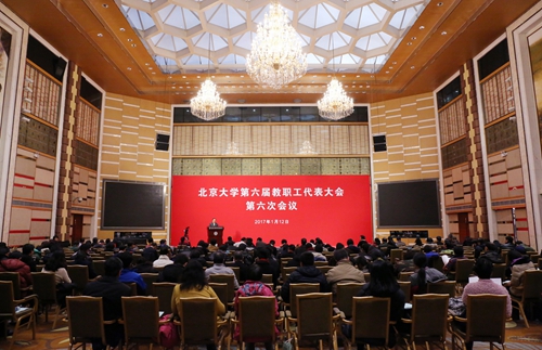 2017年1月12日上午,北京大学第六届教职工代表大会第六次会议在英杰交流中心阳光大厅召开。学校党委书记郝平,校长林建华,党委副书记敖英芳、叶静漪,副校长高松、王仰麟,以及第六届教职工代表大会正式代表、特邀代表、列席代表共200余人参加了会议。会议由高松主持。
