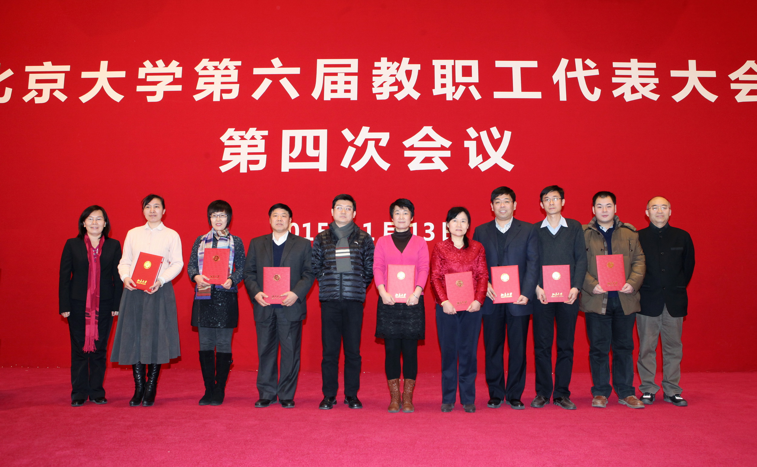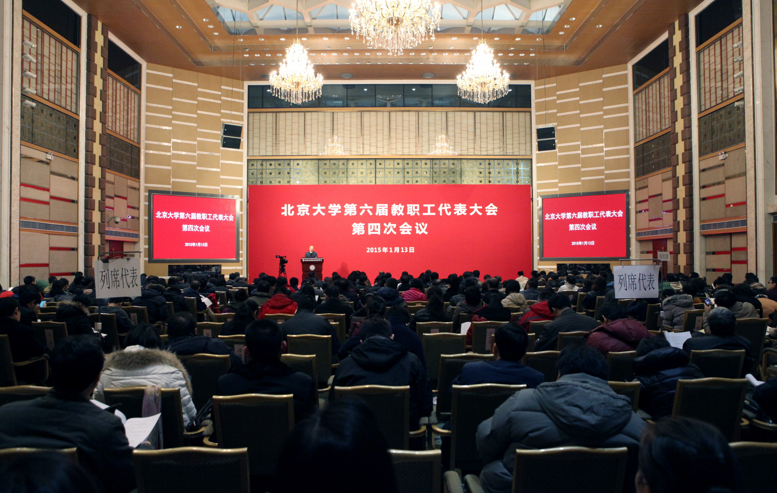 1月13日,北京大学第六届教职工代表大会第四次会议在英杰交流中心阳光厅召开。学校教代会代表,学校领导班子成员,校长助理,各职能部门、直属附属单位负责人,各学院(系、所、中心)党政负责人,各单位分管工会工作的负责人、工会主席,学校教代会、工会各专门工作委员会委员,学校各民主党派负责人,学校区、市、全国人大代表和政协委员等三百余人参会。会议由副校长、教务长、教代会执委会主任高松主持。