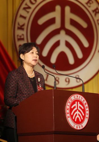 周其凤校长向大会作了题为《凝心聚力 攻坚克难 为率先跻身世界一流大学行列而努力奋斗》的学校工作报告。他从学科布局、人才培养质量、科研实力、人才队伍建设、国内合作、文化传承和创新、国际影响力、校园民生工程、财务工作等九个方面对2005年以来的学校工作进行了全面回顾总结。他表示,八年以来,北大贯彻党和国家教育方针,认真落实中央和上级的部署要求,突出“服务国家战略,坚持科学发展”的理念,主动适应国家实施新一轮教育改革发展的潮流,依托国家支持,牢牢把握改革、发展、稳定大局,统筹规划,整合资源,协调发展,全面改善办学条件,充分激发办学活力,在人才培养、科学研究、社会服务、文化传承和创新等方面都取得了突出成绩,展现办学实力的各项指标节节攀升,国际知名度显著提高,创建世界一流大学事业呈现出蓬勃发展的新局面。在充分分析当前形势和挑战的基础上,周其凤校长对学校未来的工作进行了战略部署和规划。他强调,学校要始终以人才培养为根本使命,全面提升育人质量;要进一步优化学科布局,深入挖掘科研创新能力;要始终坚持以人为本,持之以恒地抓好师资队伍建设;要以服务国家为基本方向,稳步提升服务经济社会发展的贡献率。要加大校园文化建设力度,进一步凝练和传承北大精神;要坚持改革创新,进一步完善学校内部管理体制机制;要坚持开放办学战略,进一步提高学校的国际化水平;要继续强化资源筹集、管理,进一步提升办学实力;要坚持民主管理、依法治校,保障师生参与学校决策和管理的权益,大力推进校园民生工程。