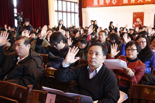 朱善璐强调指出,北大的光辉历史和光明未来都是由广大师生共同创造的。在师生员工中,教职工是最基本、最稳定的主体力量,是完成大学使命的最重要的践行者,是学校科学发展创一流的主力军,是推进民主治校、科学管理的骨干力量。学校党政和各级领导班子要牢固的树立人民意识,群众明确我们的力量来自于谁,我们服务于谁。学校党委将把加强“双代会”建设作为贯彻落实十八大精神的一个重要抓手和关键着力点,一如既往地、更大力度地支持工会、教代会工作。