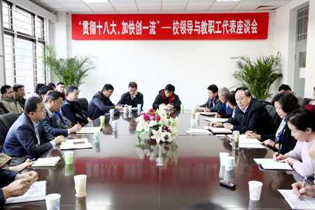 此外,来自艺术学院、法学院、信息科学技术学院、教育学院、医学部等单位的教职工代表围绕着校际资源共享、学科建设、形象建设等学校发展中的重要问题展开了热烈的讨论。