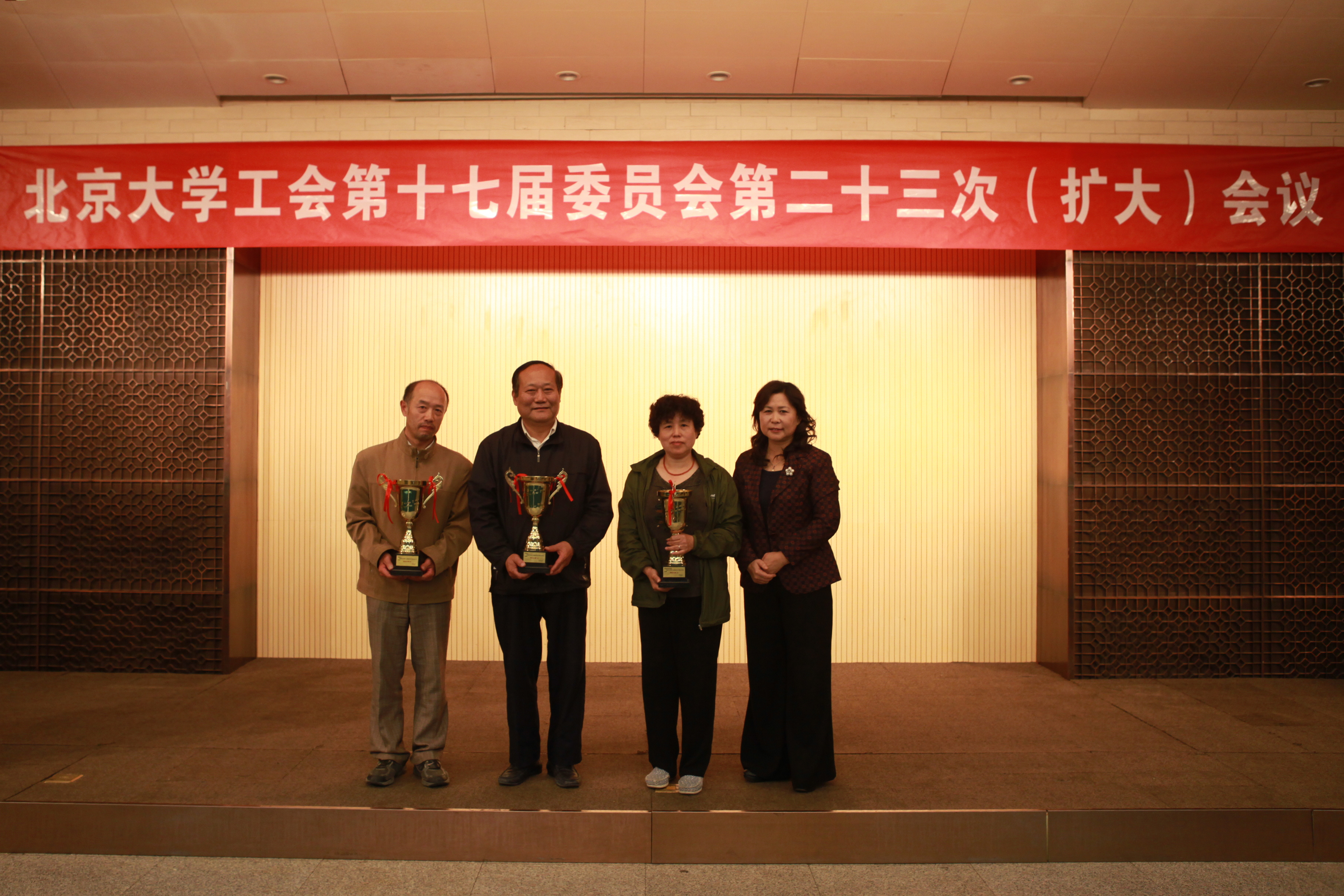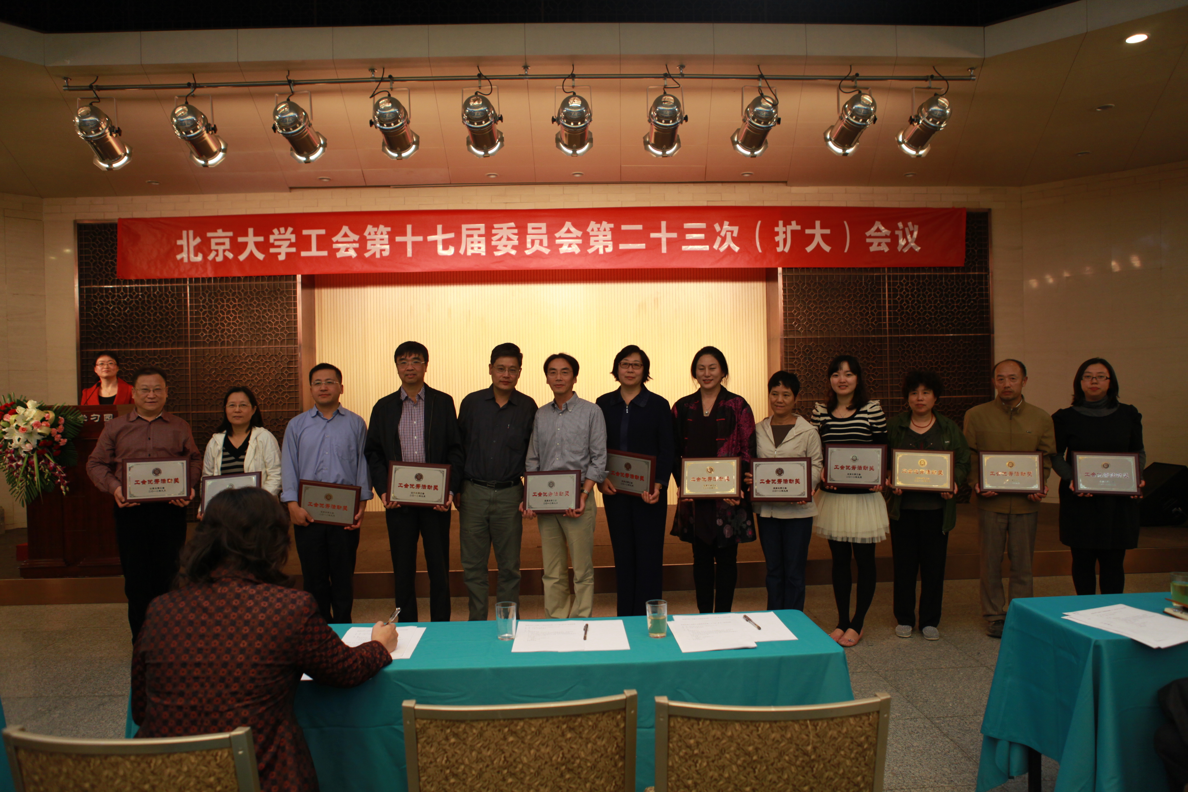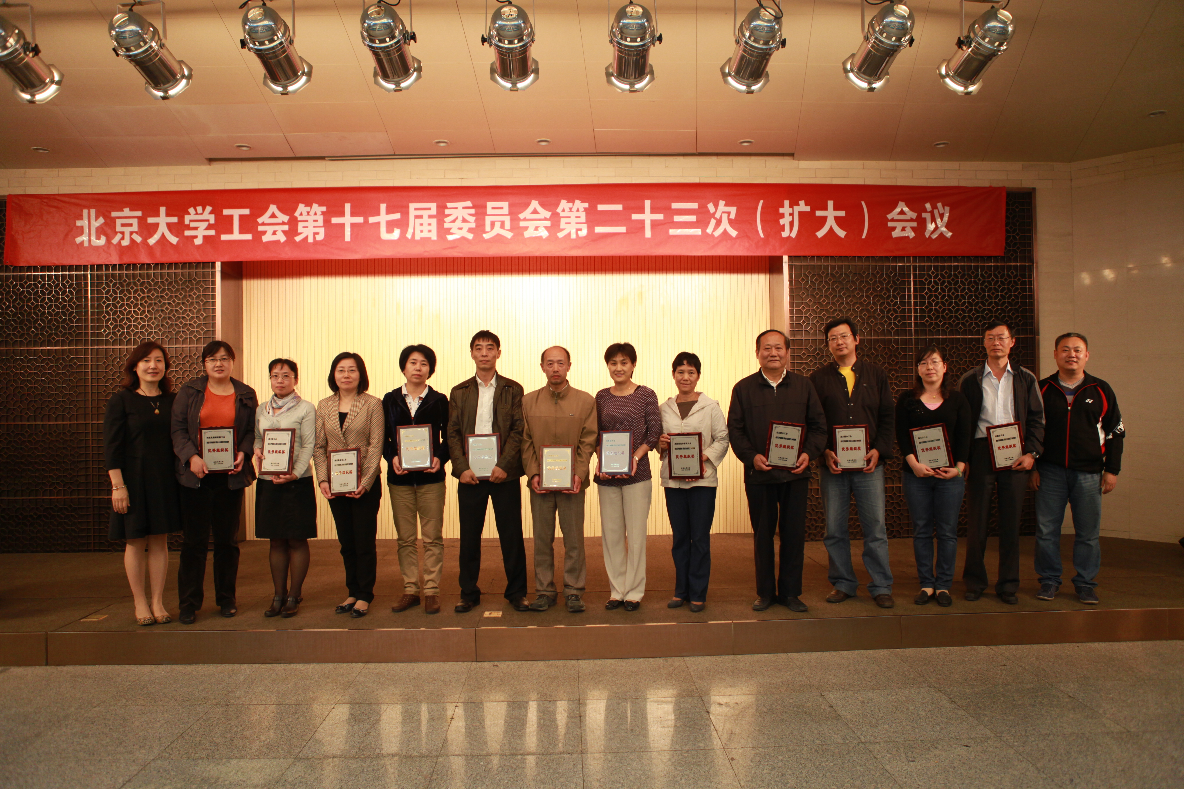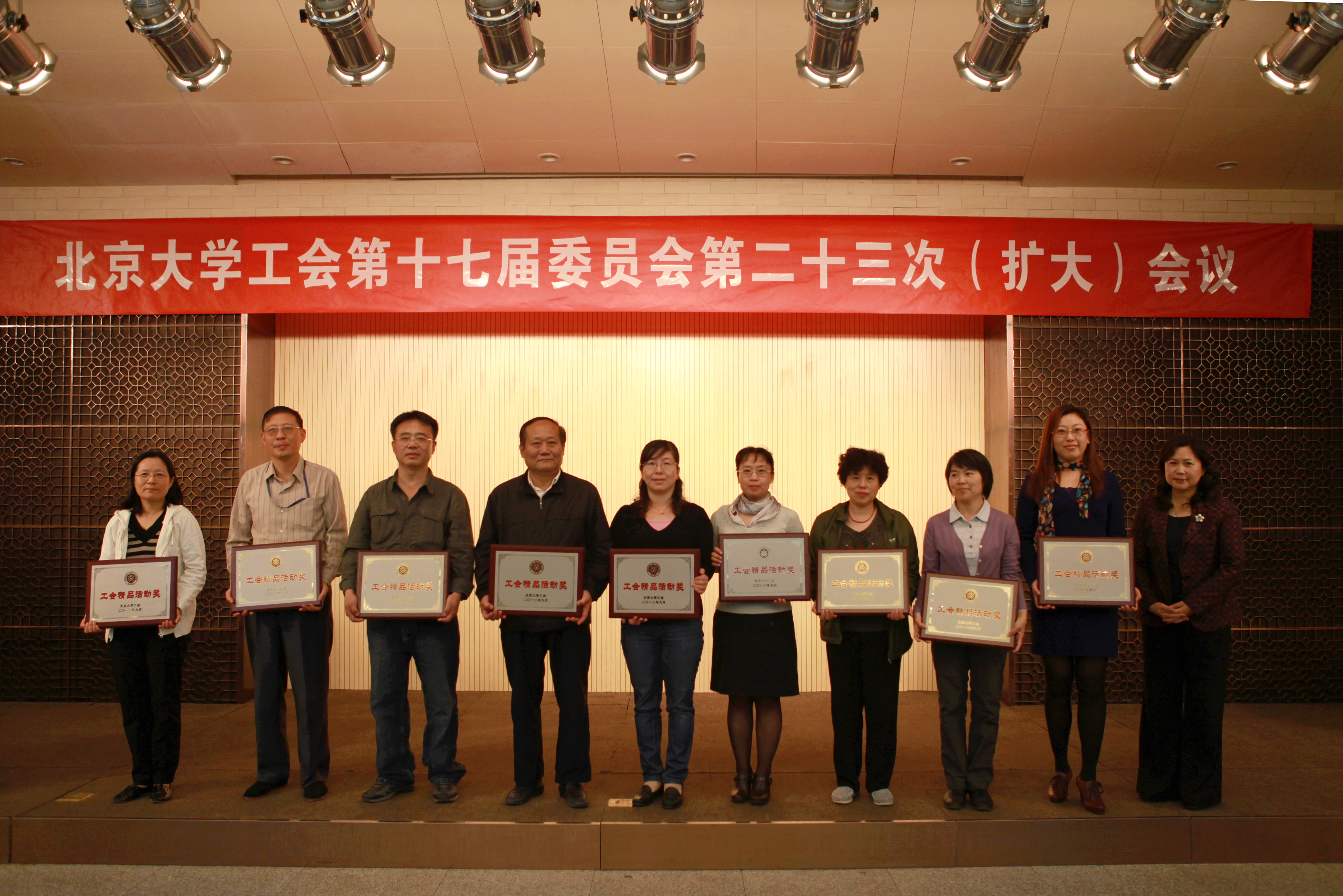 会上表彰了获得2010、2011年北京大学工会系统精品活动、优秀活动,《学校教职工代表大会规定》知识竞赛优秀组织奖,及北京大学第十九届体育文化节暨2012年校运动会精神文明奖、团体(总分)奖的获奖单位。
