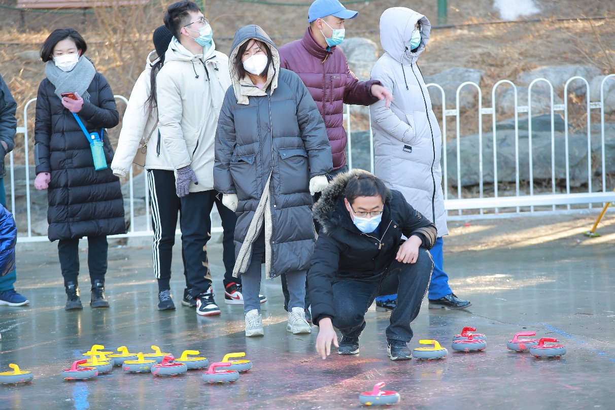 教工组冰上竞赛项目包括冰球射门、冰壶掷准、冰车两项赛共三个比赛项目,趣味体验项目包括雪圈竞速、冰车漂移两项,学生冰上运动联合协会的同学们还为参与者开设滑冰教学课堂,教授基本的滑冰技能。共有全校60余个单位的200余名教职工报名参加比赛和体验。