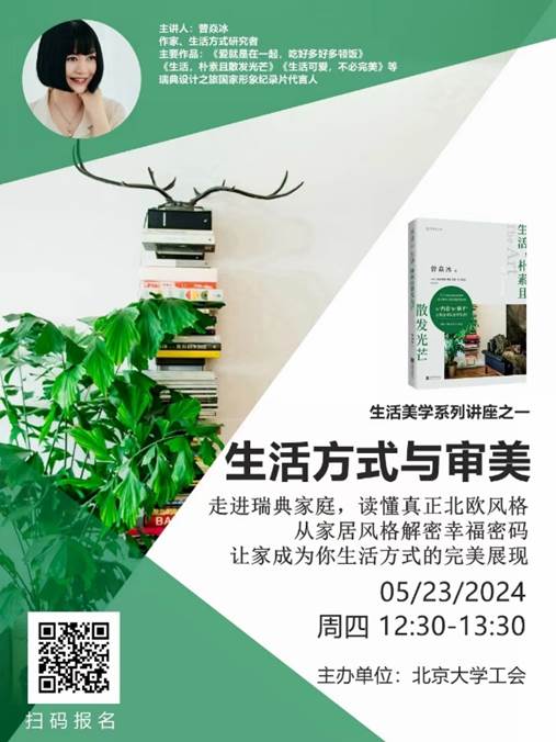 为丰富校园文化生活,引领广大教职工感受生活中的美,发现美、认识美、欣赏美,北京大学工会决定举办生活美学系列讲座,特邀作家、生活方式及餐桌艺术研究者、资深媒体人曾焱冰女士做系列分享。