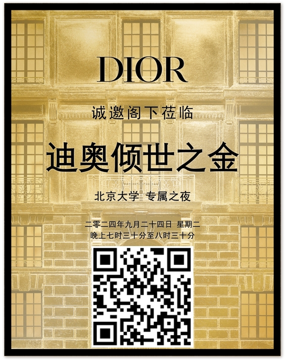 “迪奥倾世之金”(L'OR DE DIOR)展览于二零二四年九月一日,在北京嘉德艺术中心隆重揭幕。此次展览以“珍奇之境”展区为这场金色传奇之旅拉开序幕:从典藏臻品到当代新作,从标志性的迪奥时装廓形,到华丽蜕变的迪奥真我香水系列,迪奥融汇今昔故事与丰沛创想,邀请参观者尽情探索“金色”的变幻之姿。“北京大学专属之夜”等你参加。