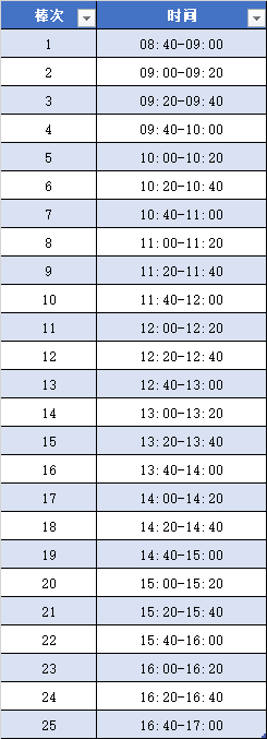 附:各组棒次时间段