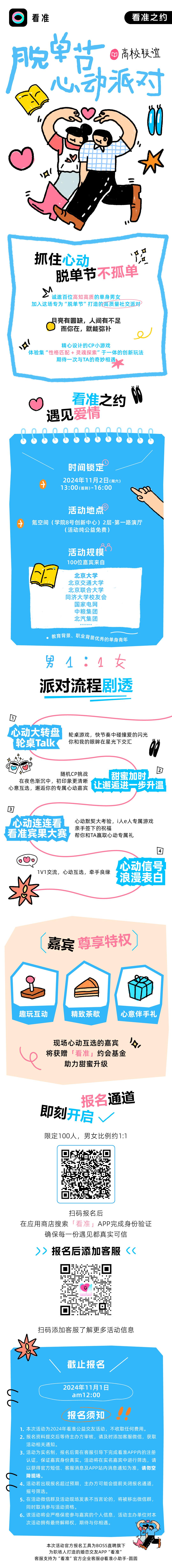日前,接到邀约,拟请我校教职工参加双十一高校职工联谊活动-“看准之约,脱单节心动派对”。本次活动由Boss直聘诚意出品的相亲APP【看准】主办,定向邀约单位包括北京大学、北京交通大学、首都经济贸易大学、北京联合大学、同济大学校友会、国家电网、中粮集团、北汽集团企事业单位的单身青年,活动纯公益免费,带你走进一场高质量的社交派对,精心设计的CP游戏、精致的心意伴手礼与茶歇,助力你与爱的美妙邂逅。