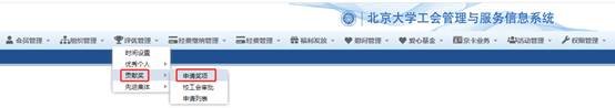 二级工会通过北京大学工会管理与服务信息系统“评优管理—优秀个人—二级工会审批”栏目,审核各奖项申报表,批量提交到校工会。