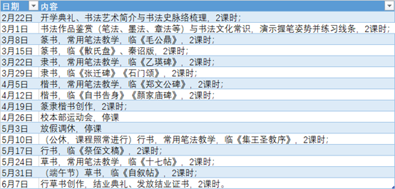 2024-2025学年第二学期,2025年2月22日至6月7日,每周六上午9:30-11:30,每次2课时。