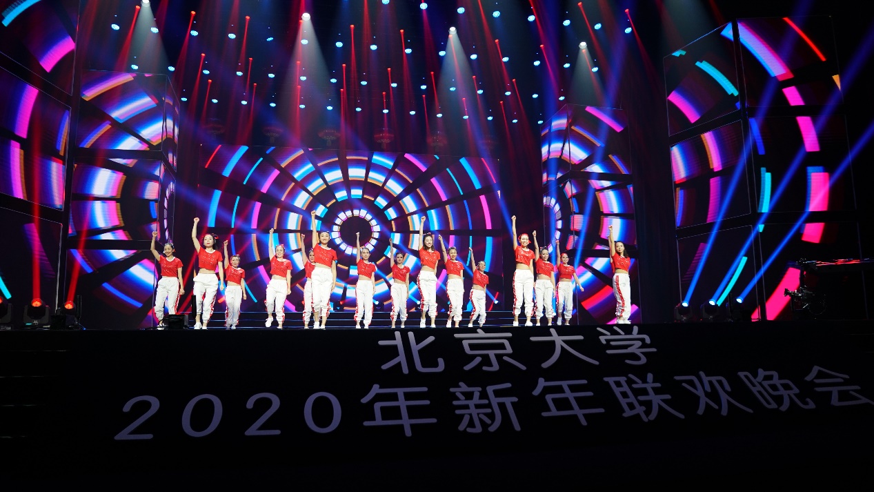 2019年12月31日晚,北京大学2020年新年联欢晚会如期在百周年纪念讲堂举行,教工健美操团为师生们带来了轻快动感的舞蹈表演《舞动节拍》。通过16位来自各单位的女老师们精神饱满地演绎,充分展示出了北大人迈入新时代的精神风貌,博得了现场师生们的阵阵掌声。
