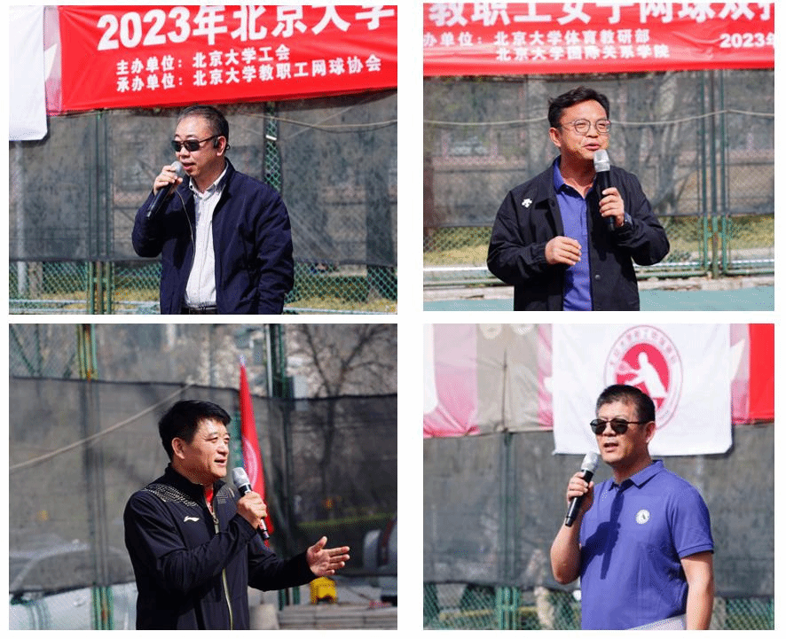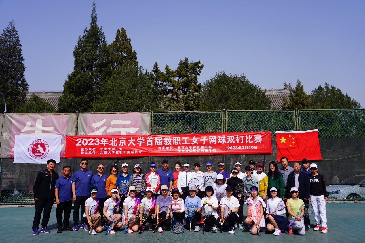 2023年3月10日中午12点,由北京大学工会主办、教职工网球协会承办、体育教研部和国际关系学院协办的“北京大学首届教职工女子网球双打比赛”在二体网球场准时打响,比赛吸引了来自学校各教学科研单位、职能部门和附属医院的32名女性教职工组成的16支代表队参赛。经过一下午的激烈角逐,北大附中代表队获得冠军,经济学院代表队获得亚军,心理与认知科学学院代表队获得季军,国际关系学院代表队获殿军。