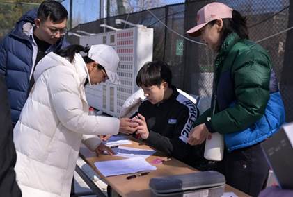 本次混双赛首次推出“抽签”制。20位女老师通过现场抽签,随机与男老师组成搭档,让比赛充满了悬念和期待。签到处一片欢声笑语,热闹非凡: