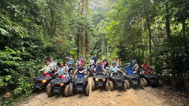 在邦咯岛上,进行了极具刺激与挑战的热带雨林丛林穿越活动。在专业向导的带领下,大家骑着四轮摩托车,深入邦咯岛的热带雨林,穿越茂密的丛林,探索未知的领域,亲身感受了大自然的神奇与美丽,不仅锻炼了身体,更收获了宝贵的人生体验。