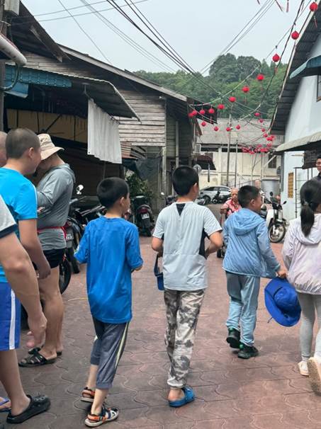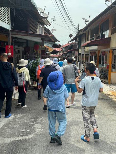 大家还游览了位于马来西亚西北部的槟城。槟城的老城区被联合国教科文组织列为世界文化遗产,这座城市融合了马来文化、印度文化、中华文化和欧洲文化等多元文化,以其丰富的人文历史和独特的文化而闻名。大家一起走访槟城老城区,漫步乔治市壁画街,欣赏独特的街头艺术,走过著名的姓周桥,对这个多元文化碰撞的世界遗产地有了深入的了解。