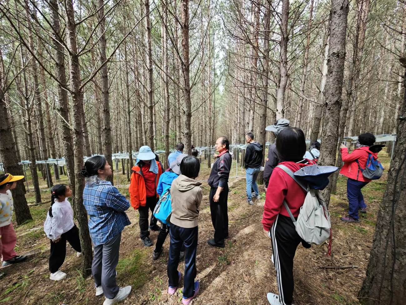 北大生态站具体负责人郑成洋老师带领我们参观生态监测样地,为大家讲解样地监测设施设备,这些设施设备看上去平淡无奇,简简单单。郑老师说,他和他的同事们在此监测已经有20年之久,并且还要继续下去,50年,100年,甚至更久的时间,他们用日积月累的监测数据记录着生态系统变迁,为国家的生态文明建设提供有力的数据支持,以奉献精神为国家的提供高质量的生态监测数据。