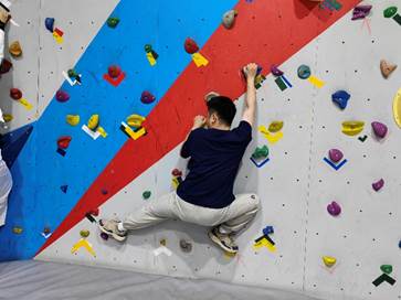 针对教职工群体特点,刘博老师特别强调了攀岩的健身价值:"这项运动能全面提升核心肌群力量、改善身体平衡性,对久坐办公人群的肩颈康复尤为有效。"
