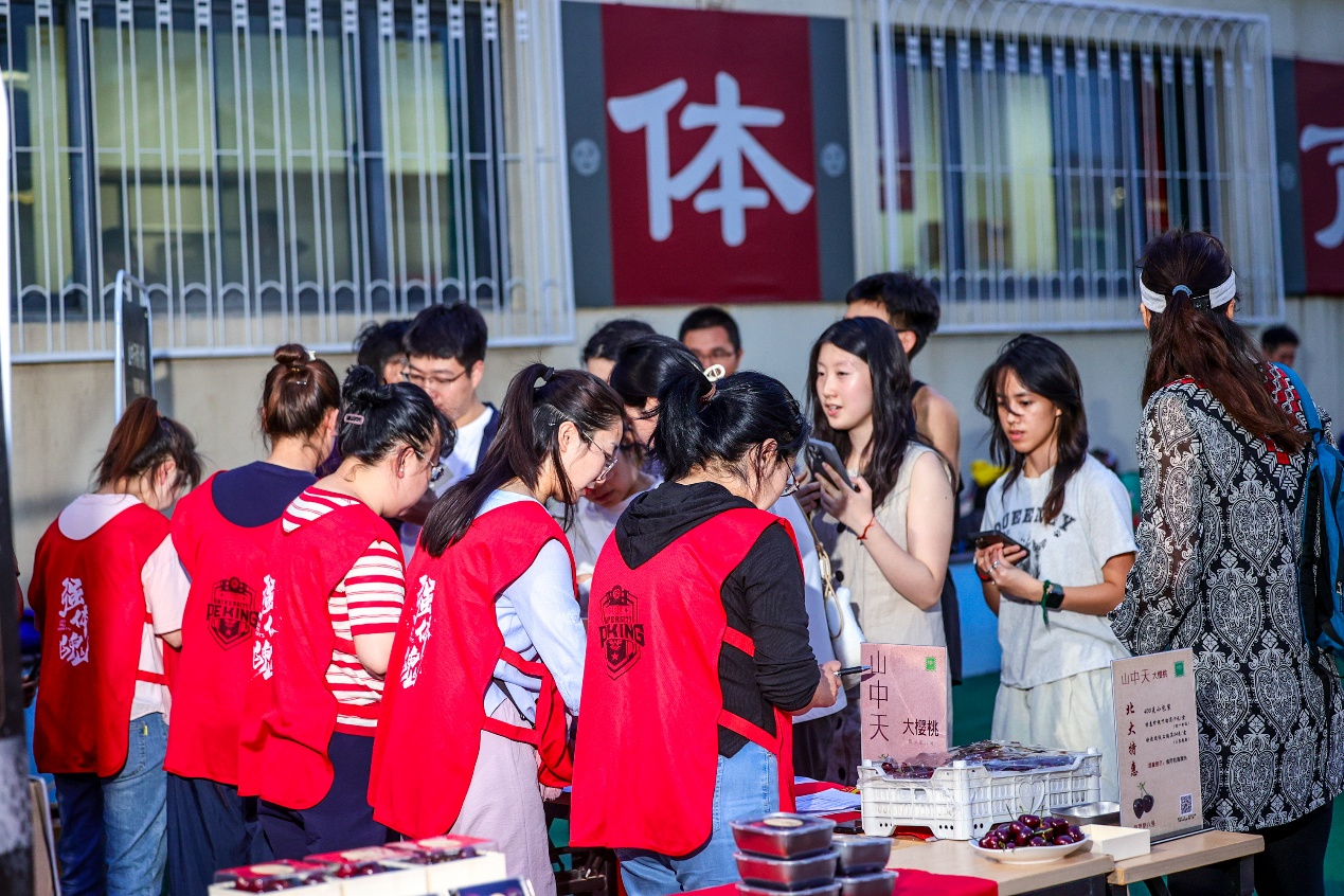 29日晚8点,樱桃领取正式开始。同学们有序排队,在志愿者核验跑步轨迹后领取这份特别的运动奖励。现场还设置了樱桃品尝区,让师生们提前感受这份夏日的甜美。