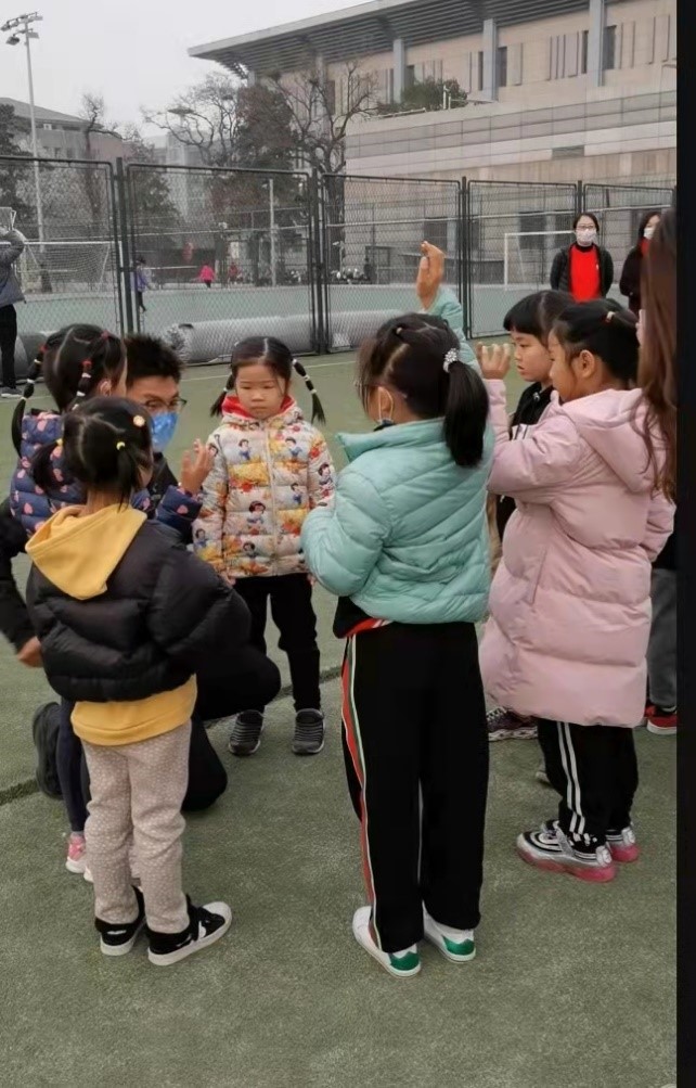 分组时有了小状况:每个娃都想当小队长。这可怎么办?别急,教练冰冰有办法!手心手背,猜拳决定,这次你当,下次我当。小朋友们的积极性瞬间都被调动了起来,想当小队长可必须要好好表现哦。