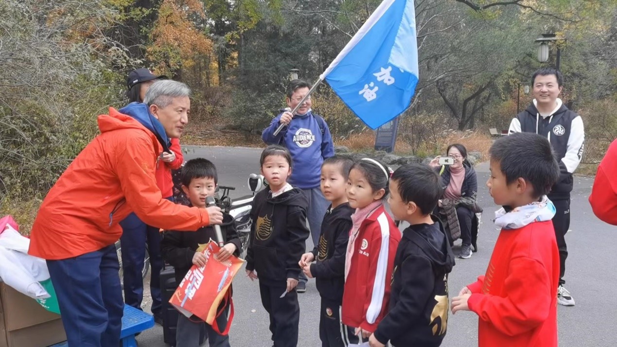 北京大学雏鹰社的旗帜迎风招展。随风舞动的旗帜下,雏鹰社理事长田越就雏鹰社亲子环湖跑致辞。她表示,这一活动是“十一”以来北大雏鹰喜迎党的二十大和纪念中国共产主义青年团成立100周年系列活动的延续,。此次“奔跑在未名,雏鹰一起来!”亲子环湖跑特别行动旨在帮助小雏鹰们养成坚持锻炼的好习惯,引领雏鹰社强健体魄、完全人格的团队氛围。