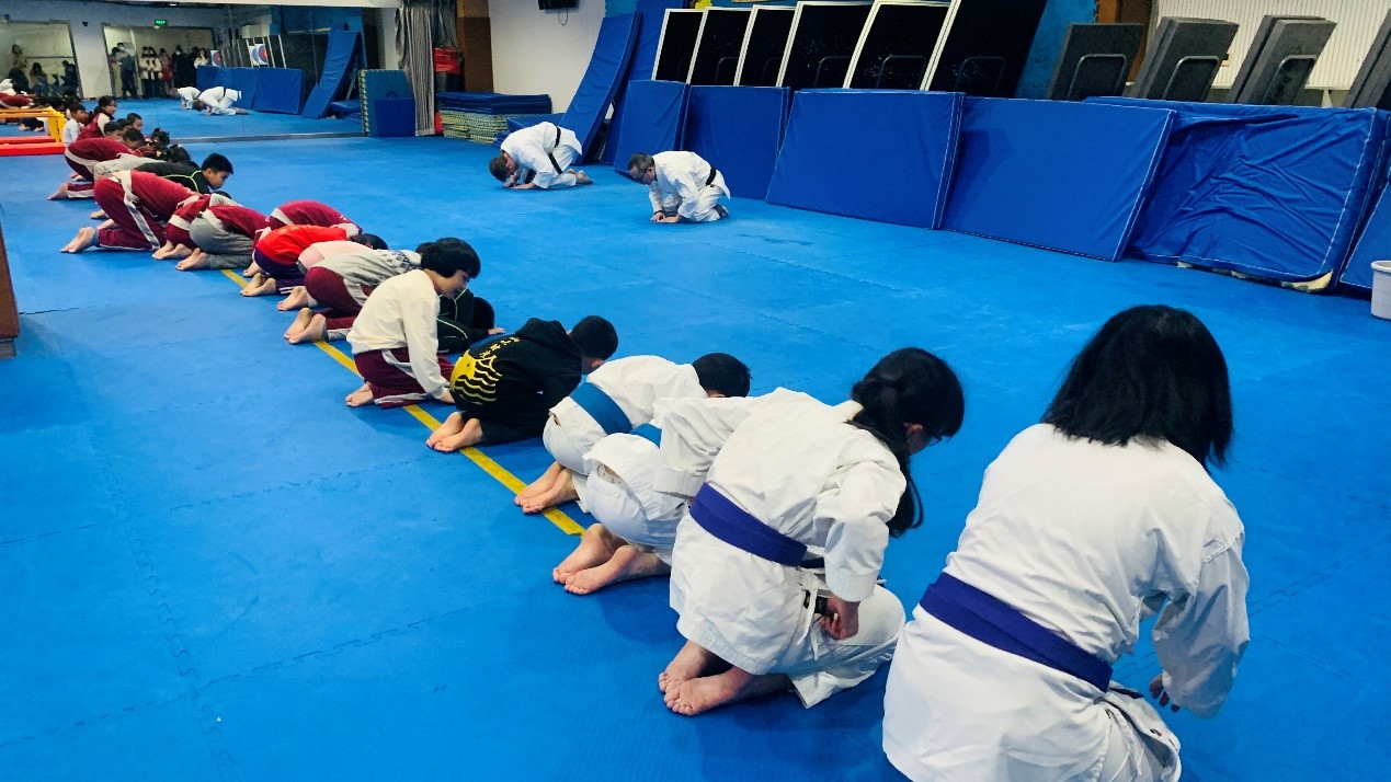 擦好了地垫,教练开始向孩子们介绍了空手道“始于礼而终于礼”的习练要求,让孩子们了解空手道的礼仪文化。见到师长要主动问好;课程结束时学员之间会相互道谢等等。这些礼仪在空手道课程上会明确和细化,有利于让孩子们养成良好的礼仪习惯。