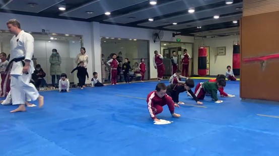 不知不觉九十分钟的课程已经接近尾声,孩子们意犹未尽。在教练的指导下,通过一次又一次出拳、踢腿,不断体会空手道动作的要领和技巧。孩子们的四肢协调能力、腰部控制能力、平衡能力等都得到提升。