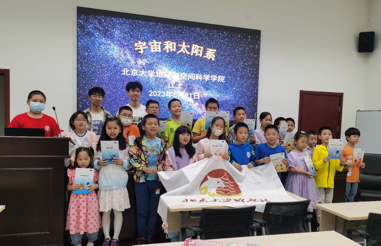 首夏犹清和,芳草亦未歇。2023年5月21日,燕园里一派生机勃勃的景象,我们雏鹰社的20余名小朋友,聚在勺园5乙楼三层会议室。来自地空学院2022级本科生江上哥哥,通过生动有趣的讲解,带领我们了解了宇宙和太阳系。