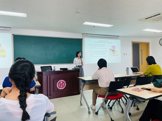 当易莉研究员以幽默风趣的方式介绍双语发展理论时,会场中不时响起爽朗的笑声。她强调,“双语的语言能力发展会稍微慢一些,但到了一定的时间节点,孩子们会对两种语言都有很好的掌握。”这一理念像一股清流,冲淡了家长们心中的焦虑,带来了全新的启示。