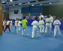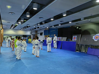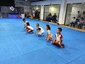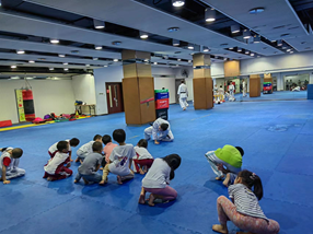 课间休息前,洪老师着重讲解了空手道的礼仪规范。空手道讲究“礼始礼终”的尚武精神,讲究未曾学艺先学礼,未曾习武先习德。通过师幼间的互敬、活动时的敬礼仪式、少儿之间的相互礼让等,让少儿理解了“礼”的含义,知道怎样做才是“礼”的表现,空手道竞赛时讲究“寸止”,所以要做到自律、控制。时刻记着礼节,并运用到生活中去,做个知礼节的人。