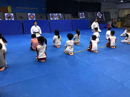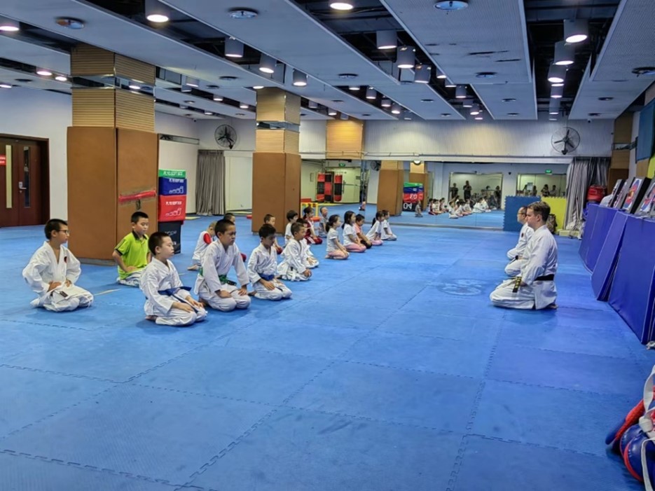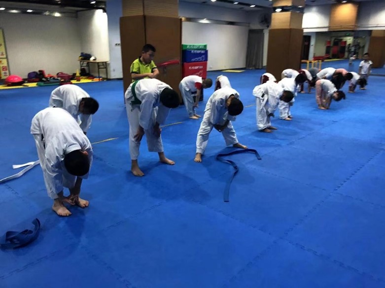 训练结束了,拉伸,冥想,互相鞠躬行礼。在孩子们欢快的叽叽喳喳中,结束了第一次空手道营的训练。