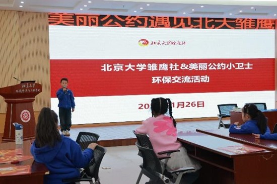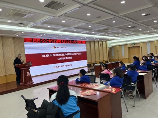 2024年1月26日,五位“美丽公约小卫士”中的佼佼者,从西藏、新疆、四川等偏远地区来到北京、与“美丽公约”北京小分队的部分小朋友一起走进北京大学、走进环境大楼,在北京大学环境与科学学院的牵线搭桥下,与北大雏鹰社小朋友共聚一堂,开展环保交流活动。活动由北大环科学院副教授、“美丽公约”特聘专家韩凌老师主持。