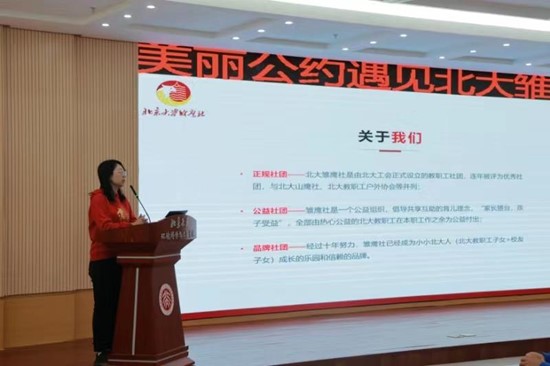 其后,雏鹰社理事长田越老师向与会嘉宾介绍了北大雏鹰社。十年来雏鹰社践行北大精神,教职工家长倡导公益理念,共享互助育儿的资源和经验,依托常规社团、品牌活动和系列精品活动,构建小小北大人健康成长的乐园。雏鹰社日常也很注重“小雏鹰”们环境保护意识的培养,这与“美丽公约”的主旨不谋而合。这一点在接下来的环保故事分享中得到了充分体现。