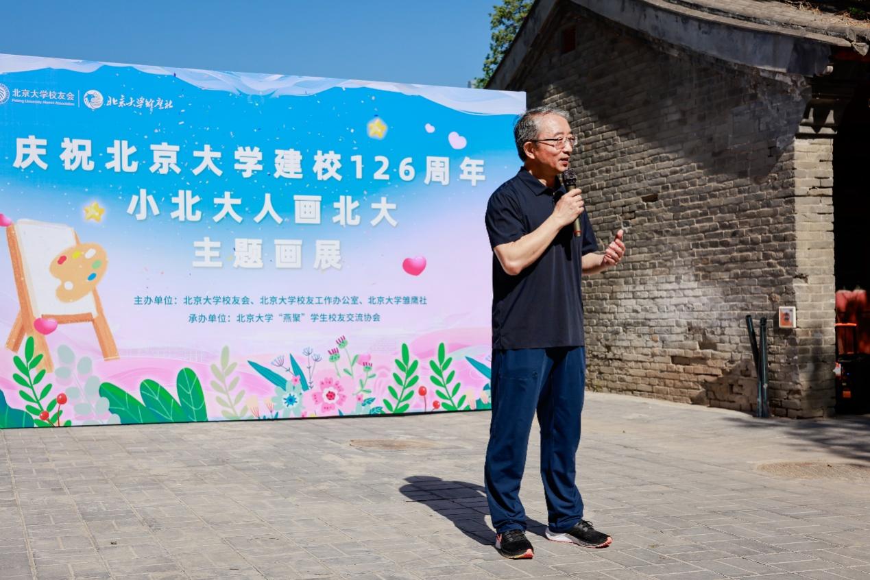 阳光照耀,六一童真璀璨。2024年6月1日上午,在这个生机勃勃的夏日里,在童真洋溢的儿童节,庆祝北京大学建校126周年暨“小北大人画北大”主题画展开幕仪式在北京大学工会后小院成功举行。出席活动的嘉宾有北京大学校务委员会副主任兼秘书长、关心下一代工作委员会副主任、工会主席安钰峰,北京大学校友工作办公室副主任、校友会副秘书长赵文莉,北京大学附属小学美术教研组组长贾继红,以及近30位“小北大人”画作小作者及其家长共计60余人参加活动。北京大学工会副主席、雏鹰社理事长田越主持开幕仪式。