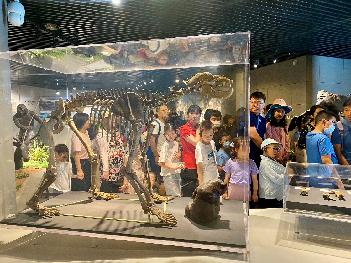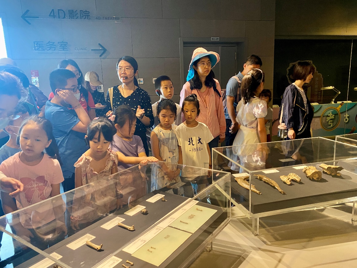 在人类化石区,孩子们驻足良久,仔细观察了代表“北京人”的化石遗骸。这些化石记录了70—20万年前人类祖先的生活痕迹,孩子们通过这些化石,对人类的起源和演化有了更为直观的认识。
