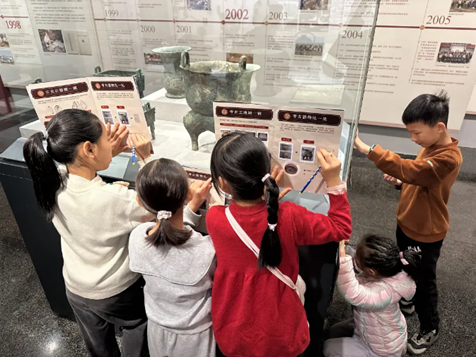 在博物馆内,孩子们的热情如同被点燃的火花。他们积极地向志愿者提问,无论是古老文物的来历,还是考古发掘的艰辛过程,抑或是那些深埋于历史尘埃中的小故事,都是他们好奇心中亟待解答的谜题。志愿者们耐心细致地讲解,为孩子们打开了一扇扇望向古代灿烂文明之窗。
