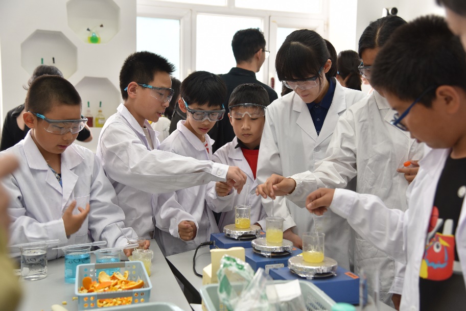 化学学院的关妍老师早早就到了学院门口,等待着小雏鹰们的到来。在学院大厅集合后,关老师向大家抛出了一个问题:“同学们,你们知道我手里拿的这是什么吗?”大家顿时安静了下来,看着关老师手中的实验用具,等待着老师的讲解。