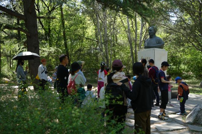 在翻尾石鱼前,圆明园流散文物的漂泊故事牵动人心——从长春园遗存到燕大校友捐赠,这尊融合中西雕刻艺术的石鱼承载着几代学人的守护情怀。在斯诺墓前,孩子们聆听这位《红星照耀中国》的作者与中国革命的血脉情缘。