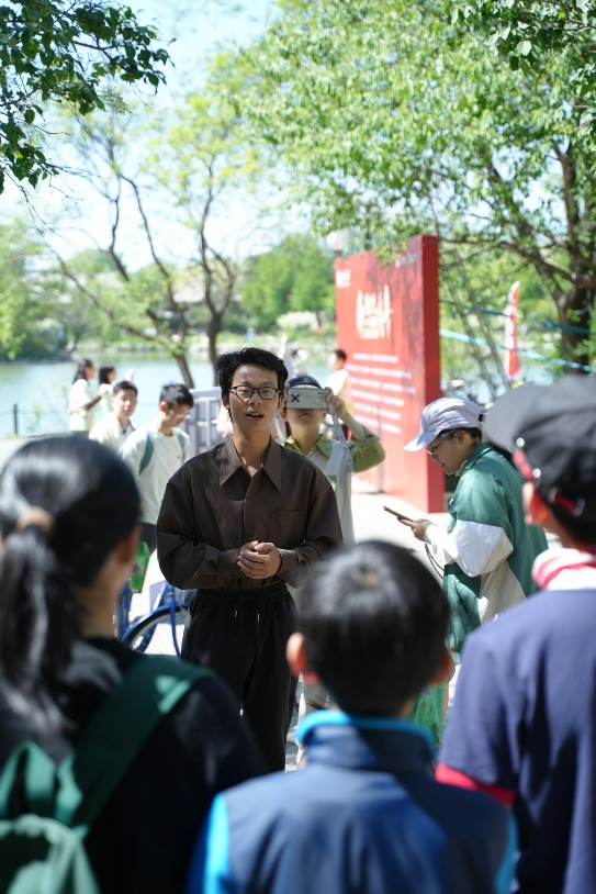 大家有序签到后,雏鹰社理事长施文博老师介绍了此次活动的主要内容,考古文博学院的韩雨立同学全程负责讲解。雏鹰社的小成员们以脚步丈量燕园建筑肌理,用童心触摸北大历史文脉,在春日的未名湖畔展开一场跨越时空的对话。