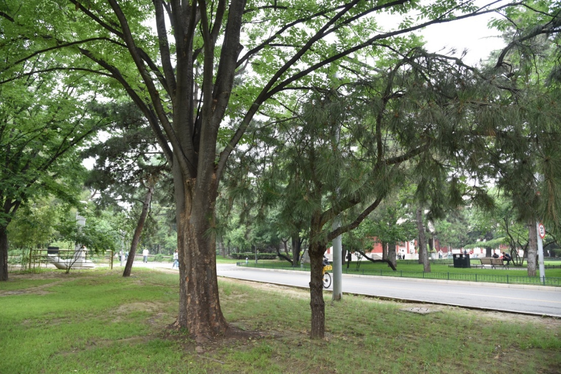 静园正北侧,有一棵油松和一棵榉木已成为生物课上的明星。油松年长榉木数岁。当年油松青少年时,榉木还是棵小苗苗。怎奈榉木生长迅速,后来居上。十余年来,致密膨大的榉木树冠严严实实盖住了原本洒向油松的阳光,逼的油松侧倾努力,向阳而生,但终究敌不过榉木的生长速度,油松现已垂头丧气,预测命不久矣。此乃物竞天择。