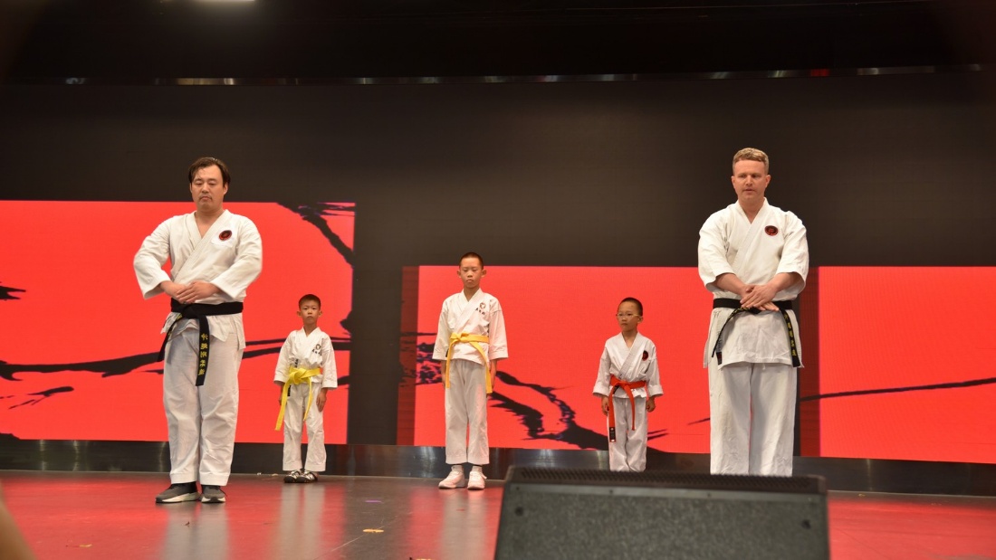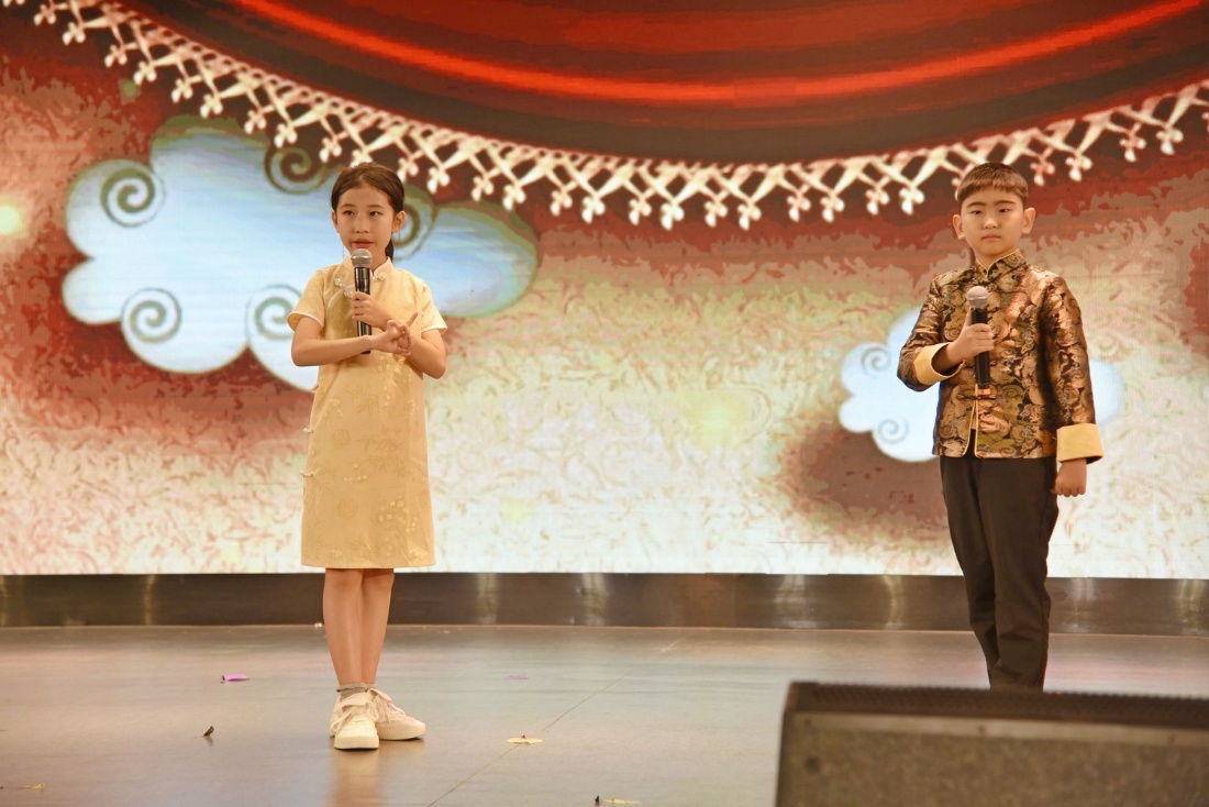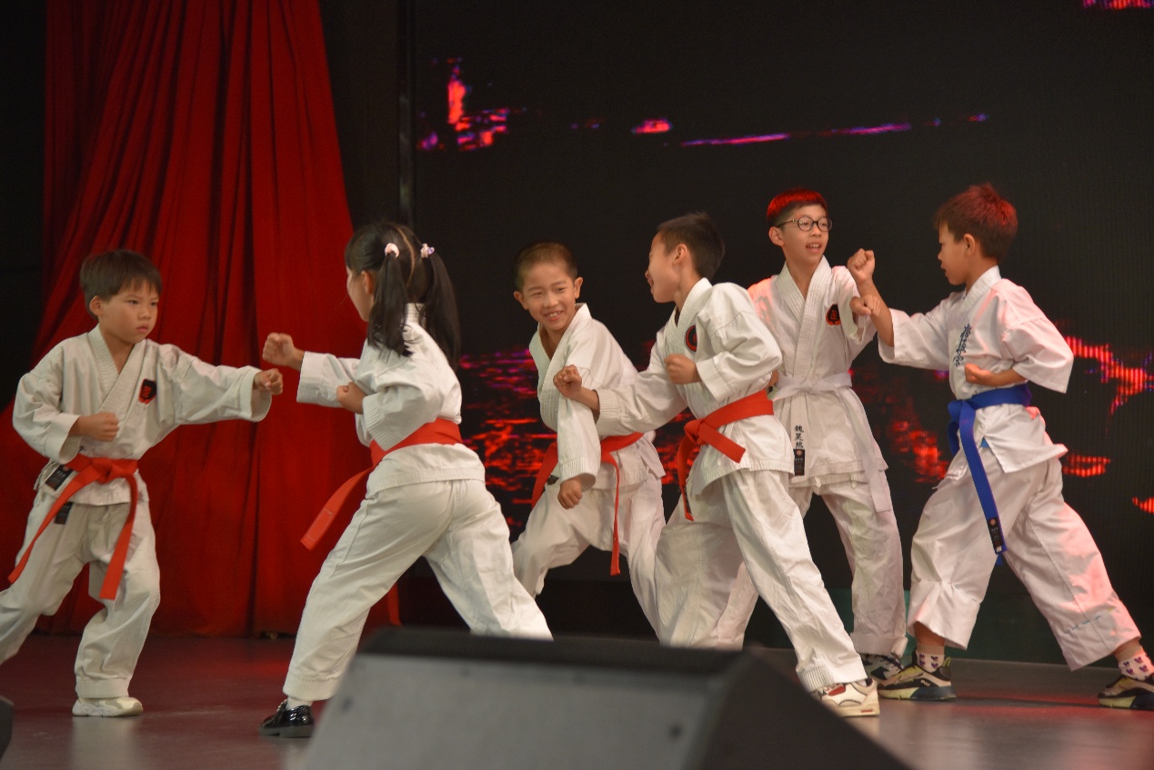 长笛少女郭芳绮指尖跃动,贝多芬《小步舞曲》轻快的旋律如月光般流淌。一袭白裙的贾美扬带来了歌曲独唱《会开花的云》——梦是会开花的云朵,翻山越岭后总会和更好的自己相遇。王允中、岳宥涵合作演绎的京剧选段《四郎探母·坐宫》唱腔深情婉转,展现了京剧声腔艺术的独特魅力和底蕴韵味。雏鹰社空手道团带来了型拳分解、约束组手和击碎第一型拳的表演,少年们拳风虎虎生威,劈开了满堂喝彩。
