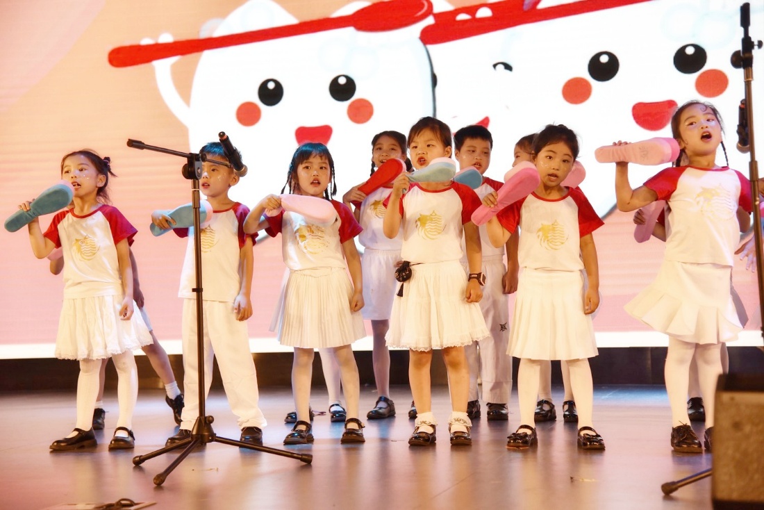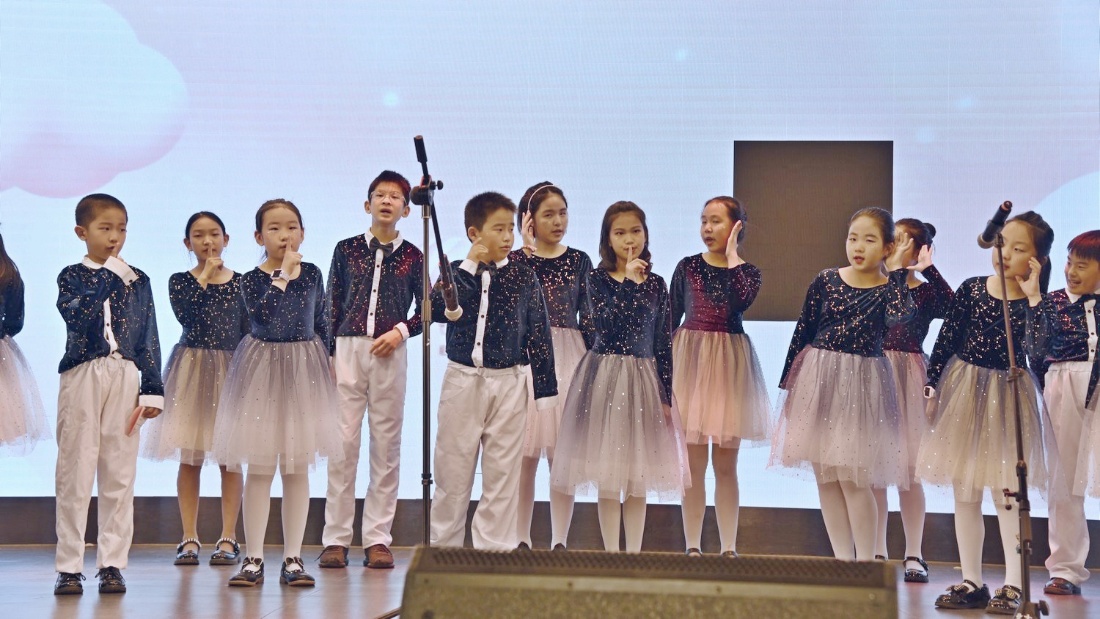 雏鹰社合唱团压轴登场。合唱团圆舞曲班、前奏曲班、奏鸣曲班的小朋友们在各自指导老师的指挥下分别演唱了合唱歌曲。《刷牙歌》《三样早》《春游》《红红的太阳》等歌曲朗朗上口、童趣十足;《田野在召唤》《乘着歌声的翅膀》《simamakaa》《the moon》《whisper》等歌曲或宛转悠扬,或灵动活泼,唱出了大家对生活的热爱和对美好未来的憧憬。