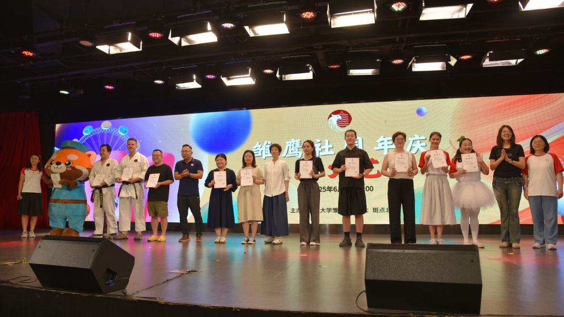 晚会上,雏鹰社名誉理事长田越致辞,并联合雏鹰社各社团志愿者为赞助单位和指导老师颁发感谢状。田越表示,多年以来,雏鹰社坚守公益初心,为孩子们搭建学习成长和展现自己的舞台,也见证了一批又一批孩子们的茁壮成长。今天有170多位小演员登台汇报演出,田越为孩子们感到骄傲,也向为活动的举办付出了诸多心血的雏鹰社理事和志愿者们表示感谢。