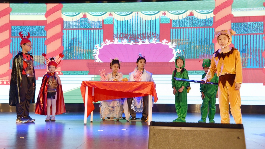 雏鹰社国际文化交流社带来的英文情景剧《Journey to the West:Wukong & the Iron Bar》是雏鹰社与新东方国际教育首次联合创排的剧目,创意改编自西游记片段,用英文演绎中国传统故事,幽默台词引得笑声阵阵、掌声连连。