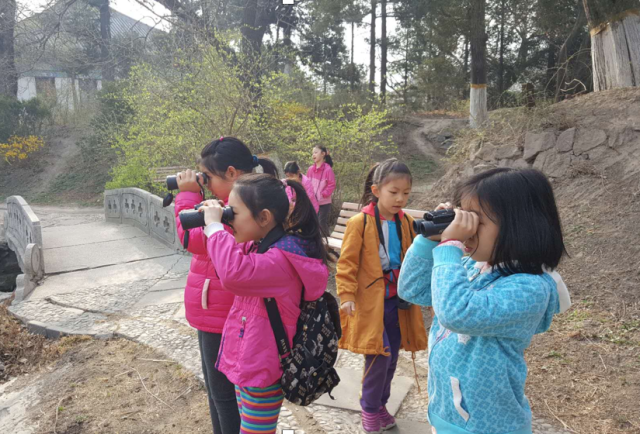 孩子们使用望远镜观鸟中(摄影/付晓芳)